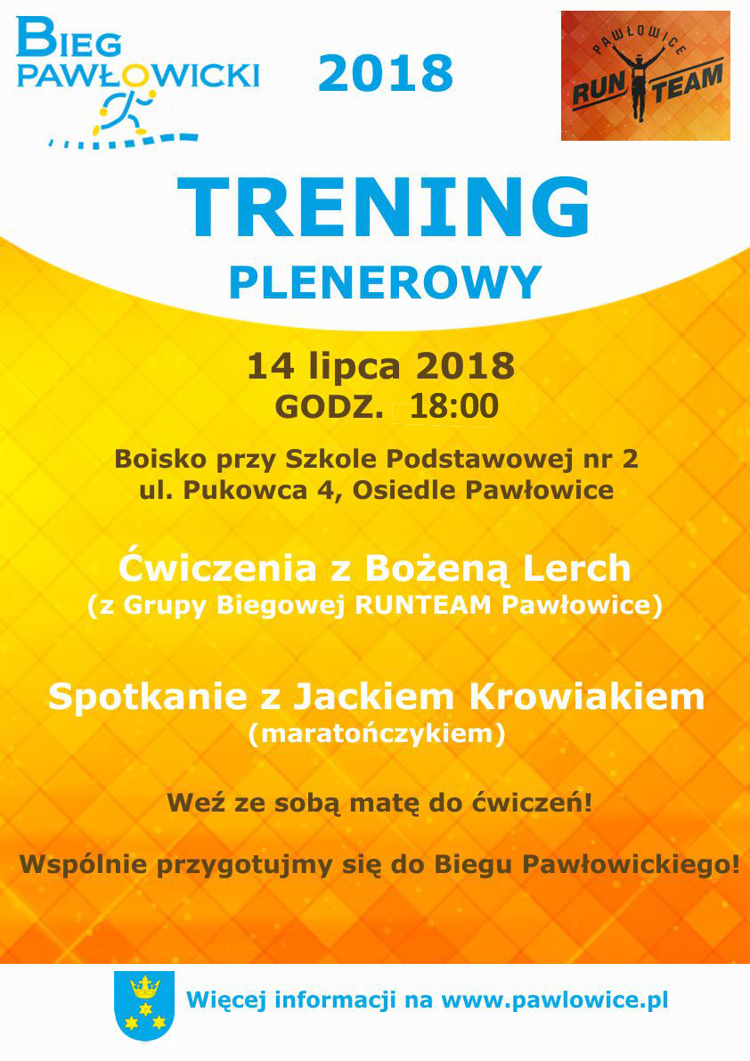 Tym razem w rytm muzyki będzie rozciągać nas Bożena Lerch z Grupy Biegowej Run Team Pawłowice. Po raz kolejny będzie też z nami Jacek Krowiak, bo trening przed Biegiem Pawłowickim nie może się przecież odbyć bez małej przebieżki. Zapraszamy wszystkich chętnych, dzieci i dorosłych bez względu na stopień sportowego zaawansowania. Zapytajcie tych, którzy byli z nami w czerwcu - taki trening na boisku to przede wszystkim okazja do dobrej zabawy.