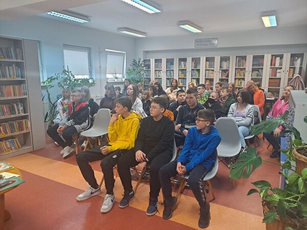 Młodzi czytelnicy, uczniowie klas szóstych i siódmych ze Szkoły Podstawowej w Pielgrzymowicach i Szkoły Podstawowej nr 2 w Pawłowicach z zainteresowaniem wysłuchali ciekawej, choć momentami przejmującej opowieści oraz fragmentów książki.