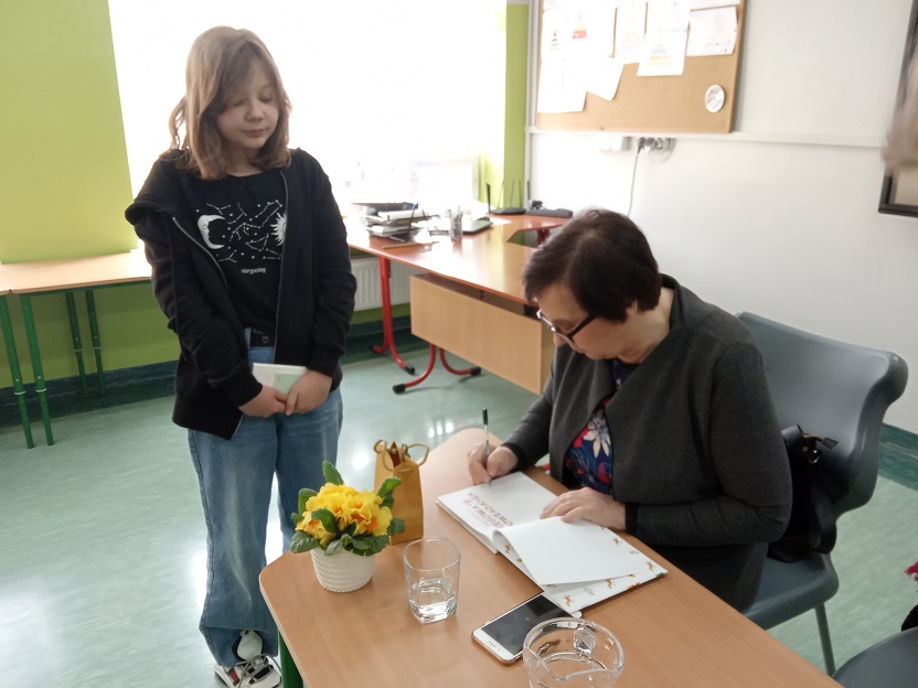 Podczas spotkania pisarka przybliżyła swoim słuchaczom postać Malali, pakistańskiej dziewczynki walczącej o prawa dzieci do nauki. Malala zdobyła pokojową nagrodę Nobla, jej dramatyczne losy autorka przedstawiła w książeczce pt. „Która to Malala”. Uświadomiła dzieciom jak wielką wartością jest życie w wolnym kraju i możliwość zdobywania wiedzy.