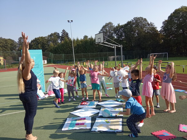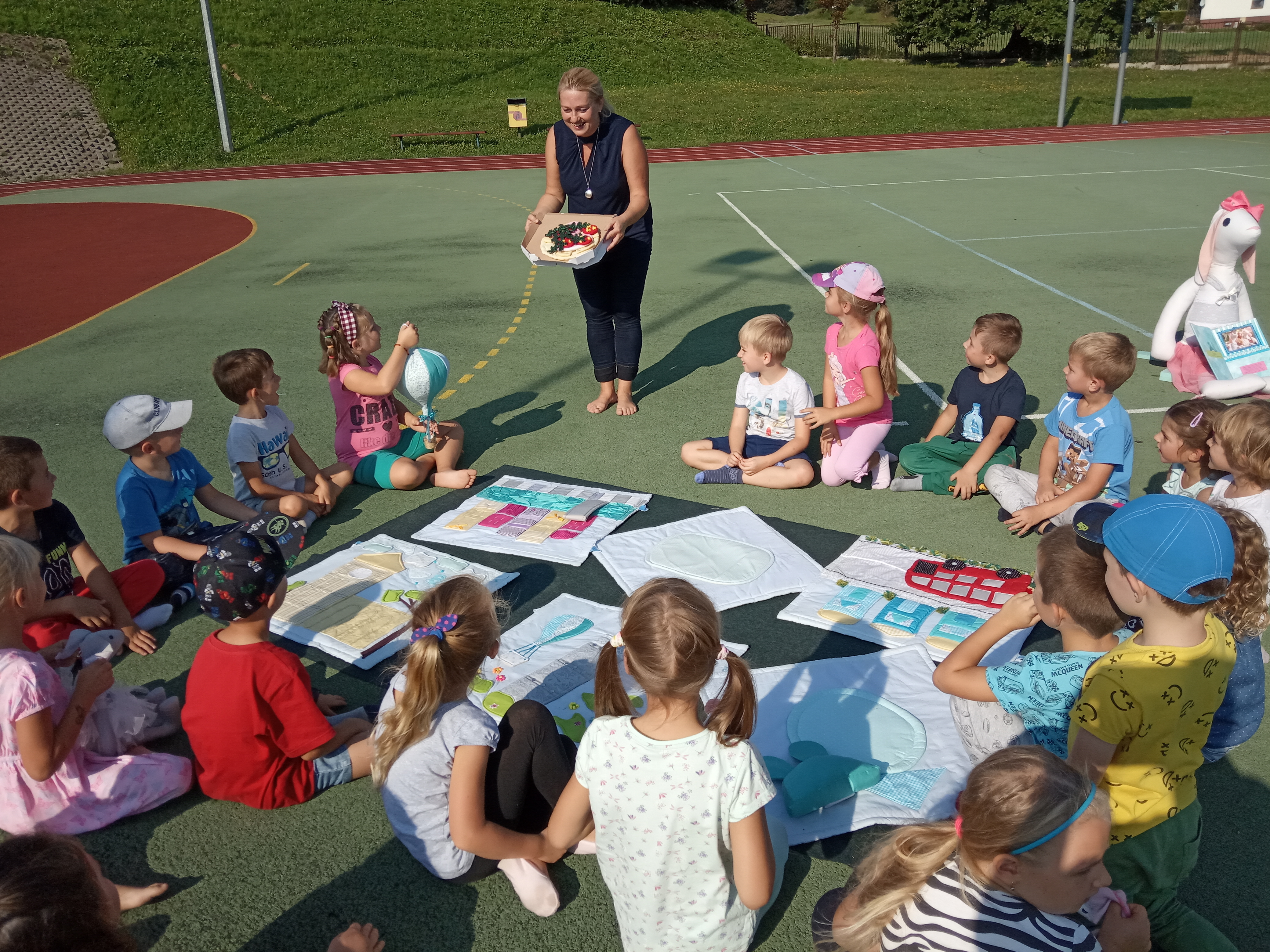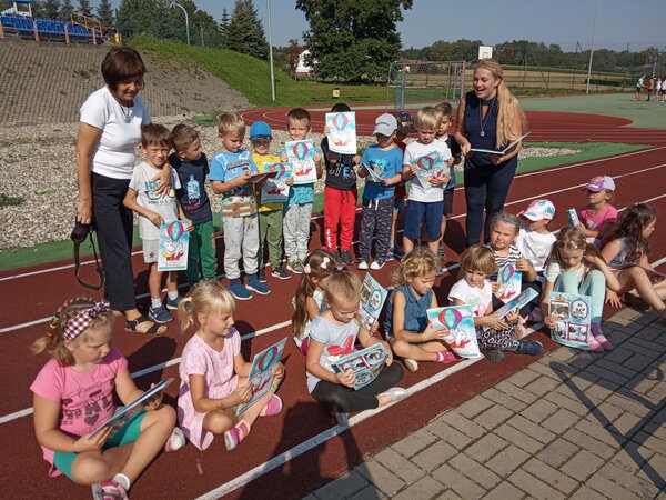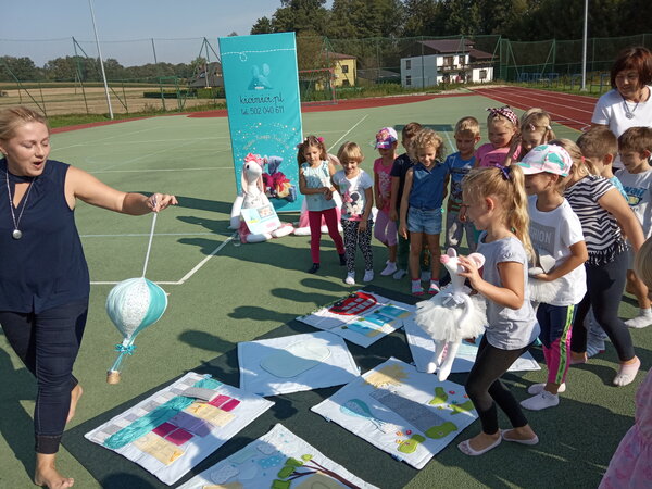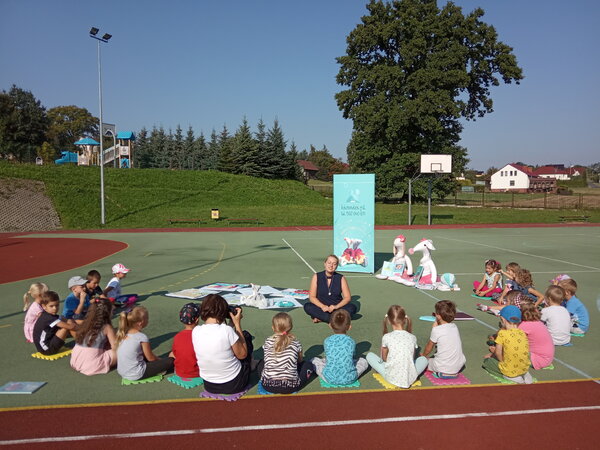 W piękne, słoneczne przedpołudnie 16 września wychowankowie przedszkola i zerówki w Pielgrzymowicach wzięli udział w bibliotecznych zajęciach plenerowych z pisarką Aliną Przydatek.