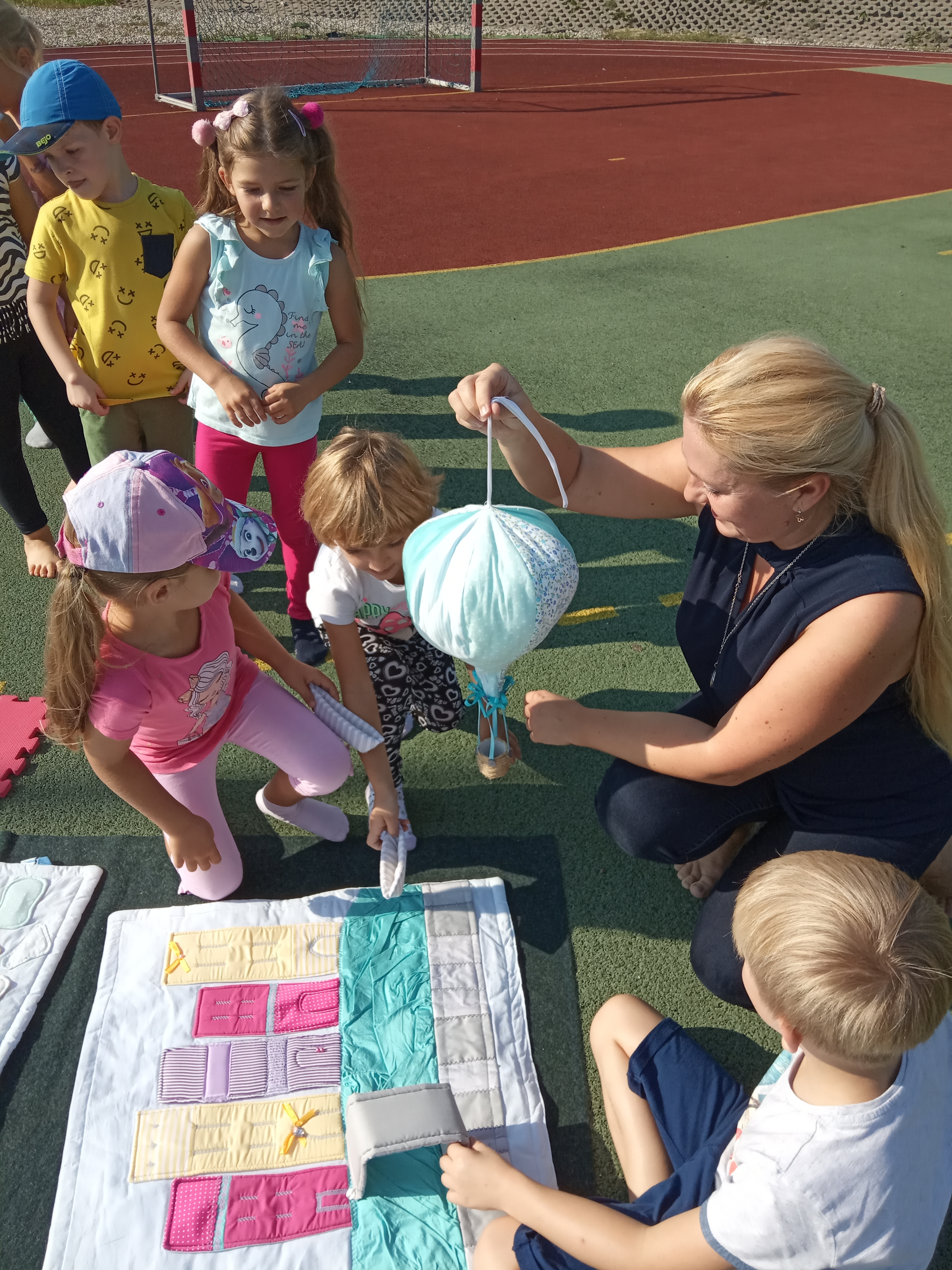 Podczas spotkań pod hasłem "Lot balonem" dzieci poznały Soniulindę oraz Matildę, dwie maskotki-podróżniczki, i wraz z nimi zwiedziły Londyn, Wenecję oraz Pizę. W rytmie piosenek i rymowanek zobaczyły Krzywą Wieżę i Big Bena, "przejechały się" czerwonym, londyńskim autobusem, a nawet "popłynęły" gondolą. Po zwiedzaniu przedszkolaki "przyrządziły" z materiałowych, uszytych przez autorkę elementów, pyszne dania: pizzę oraz zdrową rybę w warzywach.