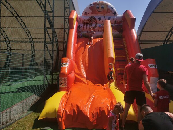 W międzyczasie można było skorzystać z dmuchańca wynajętego specjalnie na tą okazje oraz schłodzić się przy mgiełce wodnej, która cieszyła się wielkim zainteresowaniem nie tylko ze strony najmłodszych. Równolegle na dwóch kortach dzieci z grupy starszej rozgrywały swoje mecze w systemie fast4, gdzie mogliśmy oglądać bardzo ciekawe wymiany piłek. Na koniec najstarsza grupa zaprezentowała się w mikstach.