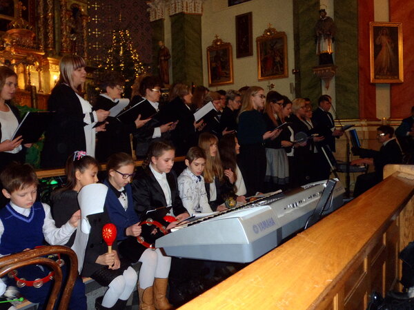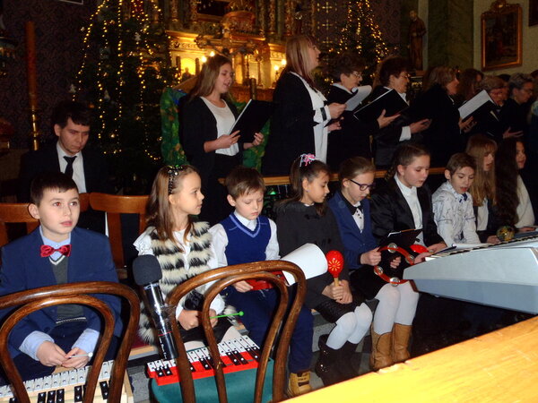 Dzieci pięknie wystąpiły i zaśpiewały pastorałki, a dorośli wsparli ich przepięknym koncertem. Wszystkim zaangażowanym składamy wielkie podziękowanie, a szczególnie prowadzącej koncert, Pani Łucji Krentosz.
