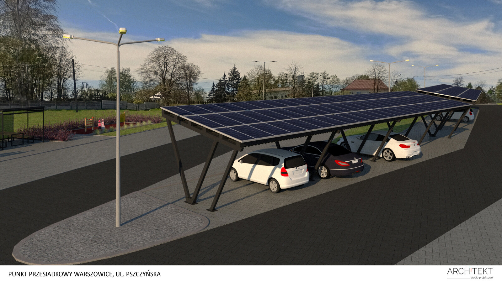 Na parkingu przy urzędzie gminy, na parkingu w Osiedlu Pawłowicach przy zespole szkół ogólnokształcących oraz na parkingu w Warszowicach przy ul. Pszczyńskiej powstaną konstrukcje zadaszające miejsca parkingowe pokryte panelami fotowoltaicznymi wraz z zintegrowanymi akumulatorami umożliwiającymi magazynowanie energii. Wyprodukowana energia posłuży między innymi do oświetlenia zadaszonych parkingów. Akumulatory, aby mogły być zasilane awaryjnie np. w sytuacji, gdy warunki pogodowe nie będą sprzyjać produkcji energii, zostaną podłączone do budynków gminnych. Na parkingu przy urzędzie gminy powstanie 6 modułów, każdy z czterema miejscami parkingowymi, w Warszowicach zostaną zamontowane 4 moduły, a w Osiedlu Pawłowicach konstrukcja będzie obejmowała tylko jeden moduł na 4 samochody osobowe.Modernizacja infrastruktury transportu publicznego w gminie Pawłowice jest współfinansowana ze środków unijnych, w ramach zadania inwestycyjnego pn.: „Zakup niskoemisyjnego taboru autobusowego wraz z poprawą infrastruktury transportu publicznego w gminie Pawłowice”.