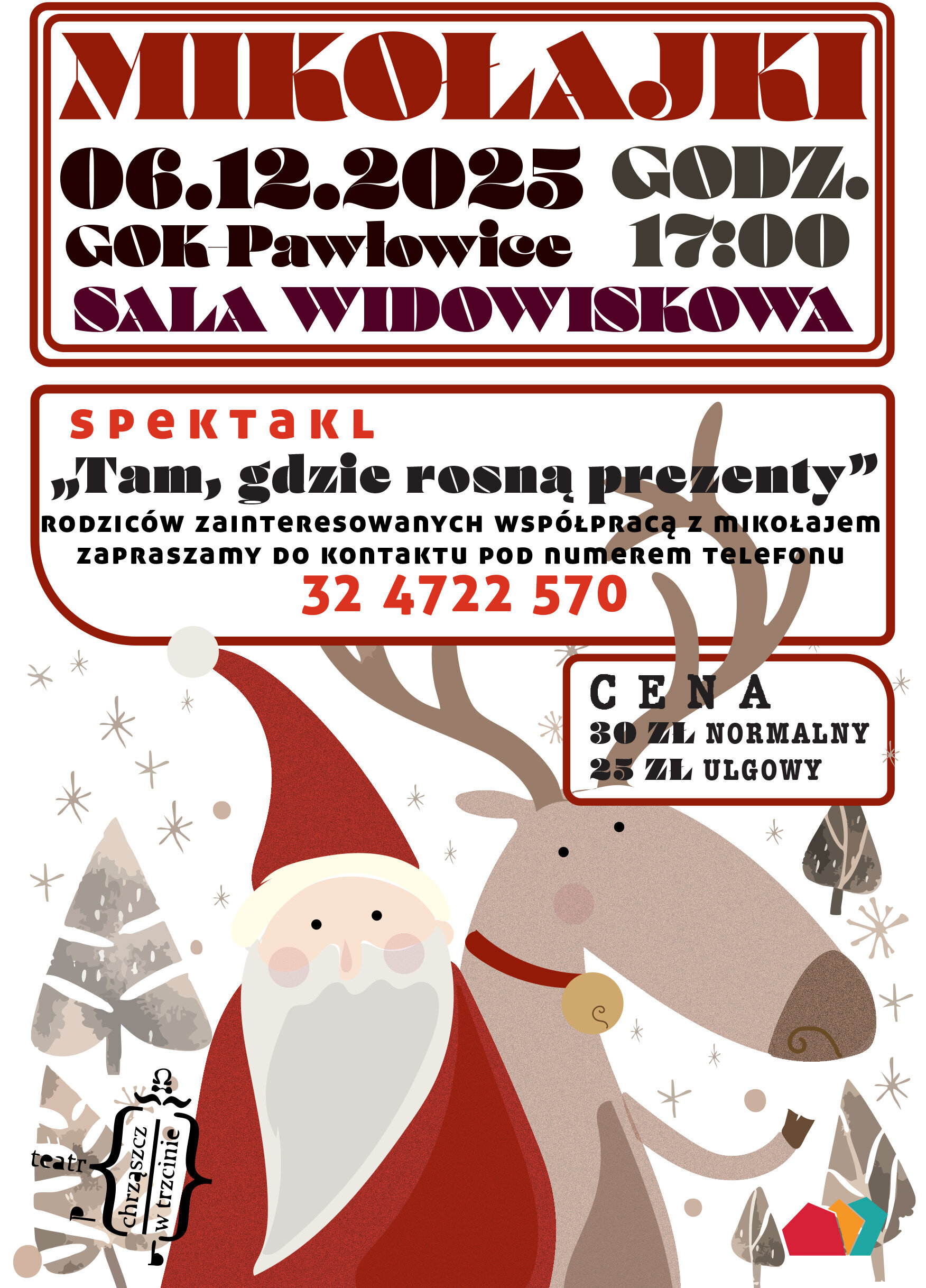 *wszystkich rodziców chętnych do współpracy ze Świętym Mikołajem prosimy o kontakt z biurem GOK