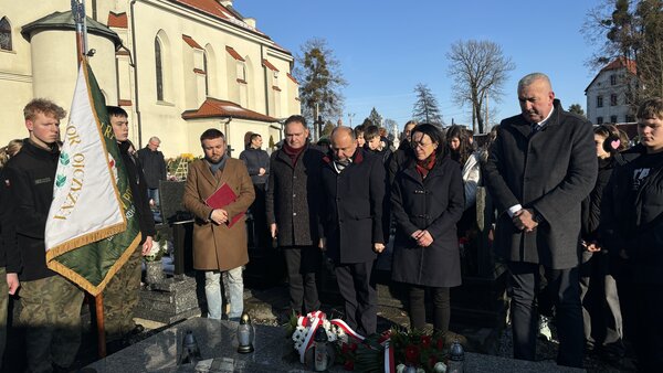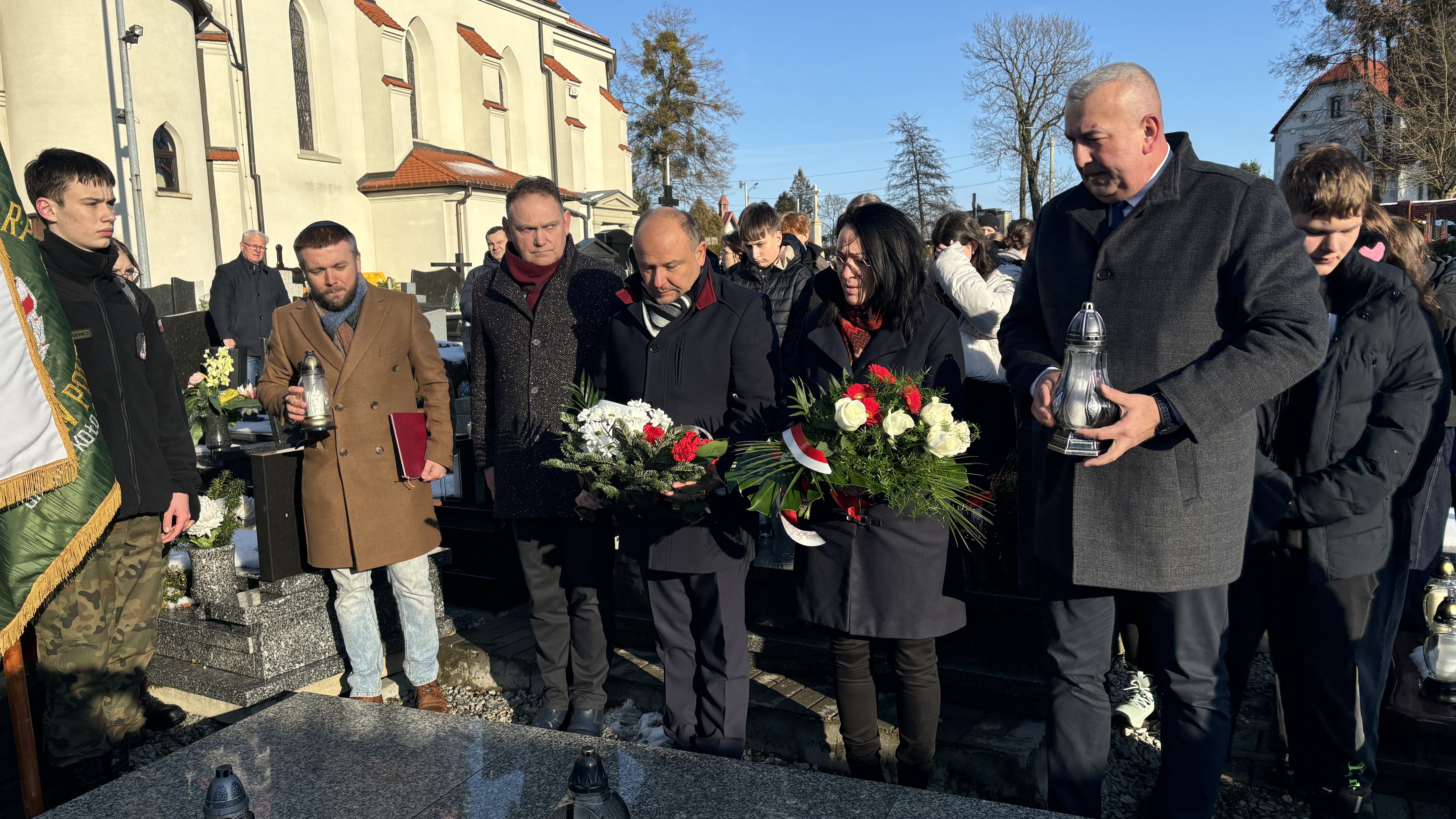 Wójt, przedstawiciele powiatu oraz uczestnicy uroczystości złożyli kwiaty, zapalili znicze i uczcili pamięć ofiar chwilą ciszy oraz modlitwą.
