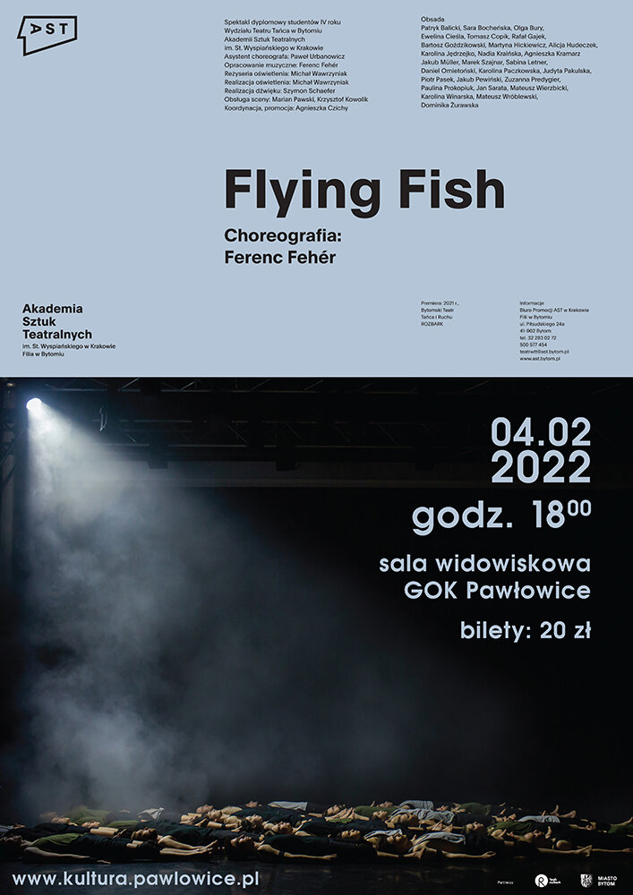 UWAGA! Spektakl odwołany______________________________Spektakl opowiada o stworzeniach, które żyją obok siebie, nie wyróżniając się w ławicy im podobnych. Poruszają się, tańczą, skaczą i latają razem. Zdarzają się jednak momenty gdy indywidualna natura daje o sobie znać. Wtedy wydarza się coś nieoczekiwanego. Choreografia wykorzystuje kreatywność i umiejętności tancerzy. Całość została doprawiona odrobiną humoru.4 lutego, godz. 18:00, sala widowiskowa GOKBilety w cenie 20 zł do kupienia w biurze GOK oraz online.Prosimy o zapoznanie się z zasadami bezpieczeństwa dla uczestników wydarzeń kulturalnych.