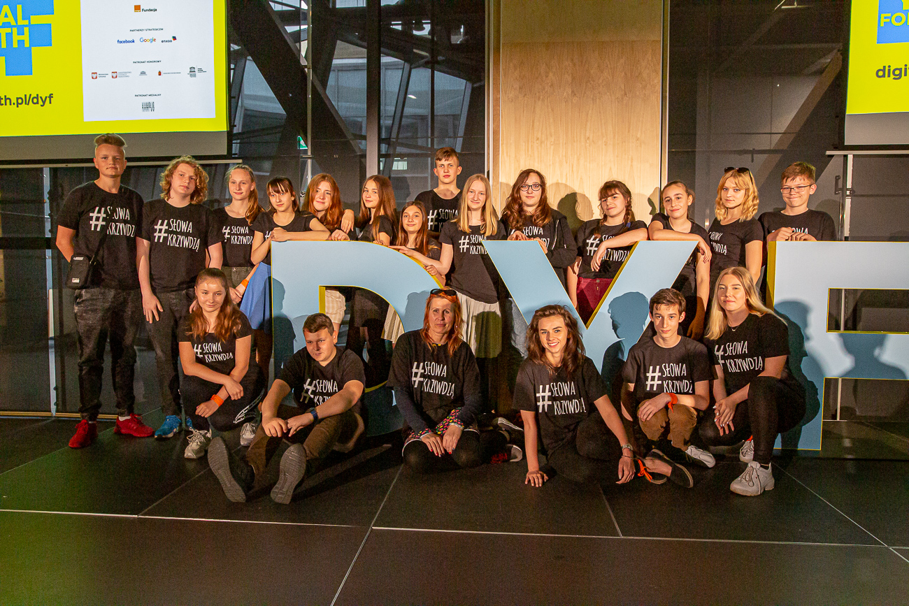 Działania pielgrzymowickiej grupy projektowej zostały dostrzeżone i docenione. Uczniowie zostali zaproszeni do Warszawy, najpierw na prezentację projektów grantowych w programie Edukacja Inspiracja 26 kwietnia, później w maju zostali zaproszeni do radia RDC w Warszawie (https://www.rdc.pl/podcast/wieczor-rdc-slowa-krzywdza/) oraz na konferencję ogólnopolską Digital Youth Forum, gdzie jako najmłodsi prelegenci mogli opowiedzieć o swojej kampanii i podzielić się doświadczeniem z dużej sceny w Centrum Nauki Kopernik, a także u boku Marcina Mellera i Anny - Dziewit –Meller wziąć udział w debacie programu Mądrzy Cyfrowi na Stadionie Narodowym.