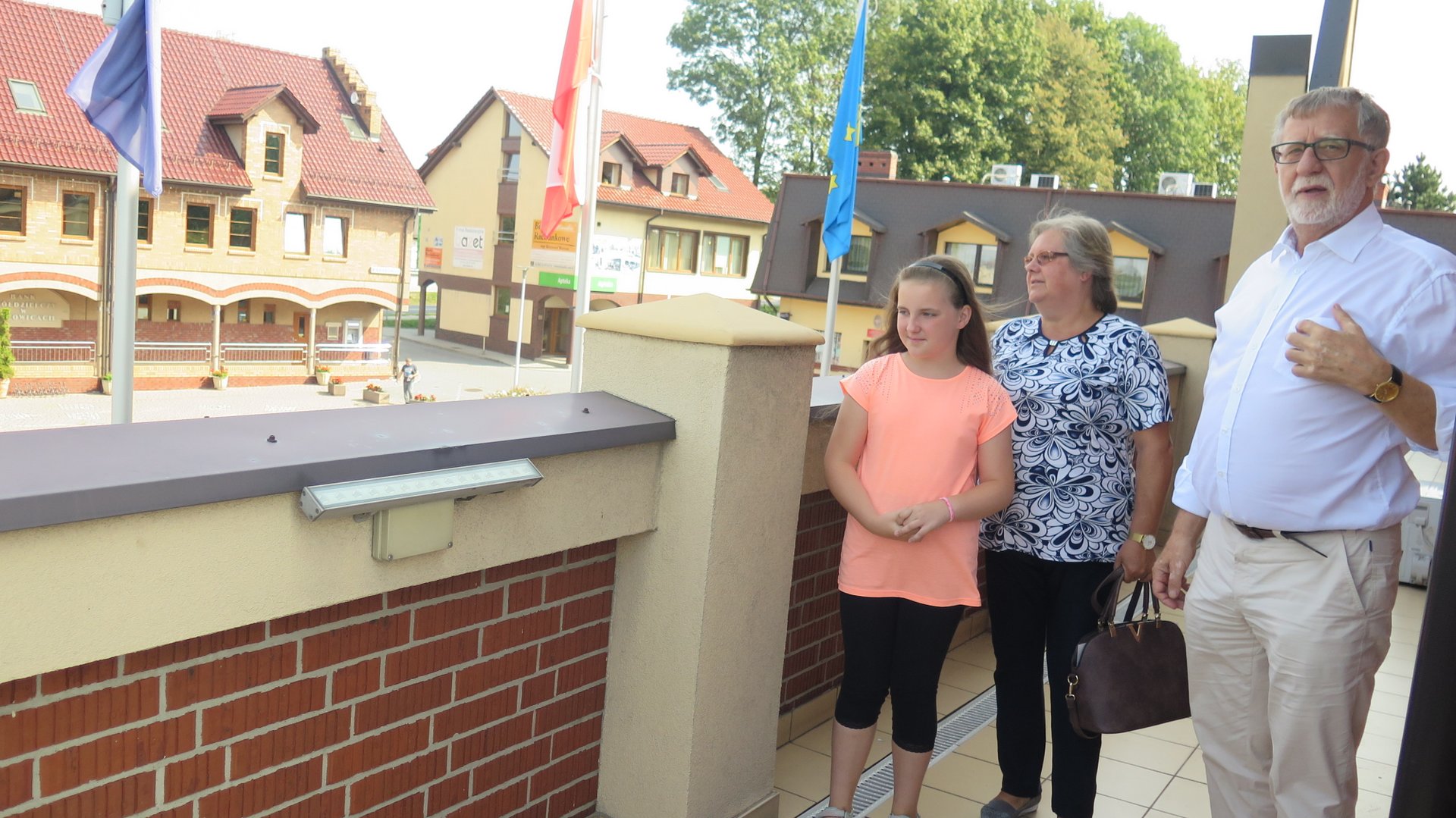 Spotkanie i wycieczka-niespodzianka była nagrodą, którą Julia wygrała podczas festynu Sąsiedzie Klimaty. Impreza odbyła się w Osiedlu Pawłowice w czerwcu z okazji dziesięciolecia Spółdzielni Mieszkaniowej Pawłowice. Julia z mamą pojawiły się w urzędzie w czwartek, 30 sierpnia. Goście mieli do wyboru zwiedzanie stacji uzdatniania wody w Warszowicach lub podbasenia „Wodnego Raju” – miejsc, których zwykle nie pokazuje się turystom. Wybrały „Wodny Raj”. Zobaczyły nie tylko, jak wygląda basen od dołu, ale również dowiedziały się ciekawostek dotyczących filtrowania i ozonowania wody. Julia z mamą po raz pierwszy odwiedziły też inhalatorium, a ponieważ dużo lepiej znają sołectwa północne, pojechały z wójtem do Pielgrzymowic. Julia zobaczyła jak wygląda tamtejsza szkoła podstawowa, dowiedziała się, kim był Karol Miarka i oglądała kronikę szkolną spisaną jego ręką. W drodze powrotnej goście wójta zobaczyli jeszcze przedszkole i zabytkowy kościół św. Katarzyny. Upominkami ze spotkania były wejściówki na basen i gminne gadżety promocyjne.