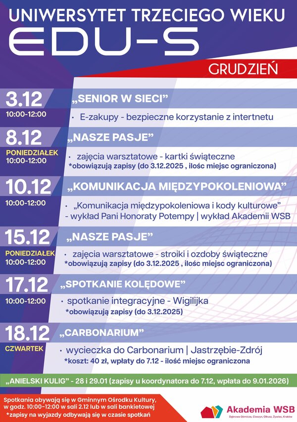 *koszt: 40 zł, wpłaty do 7.12 - ilość miejsc ograniczona