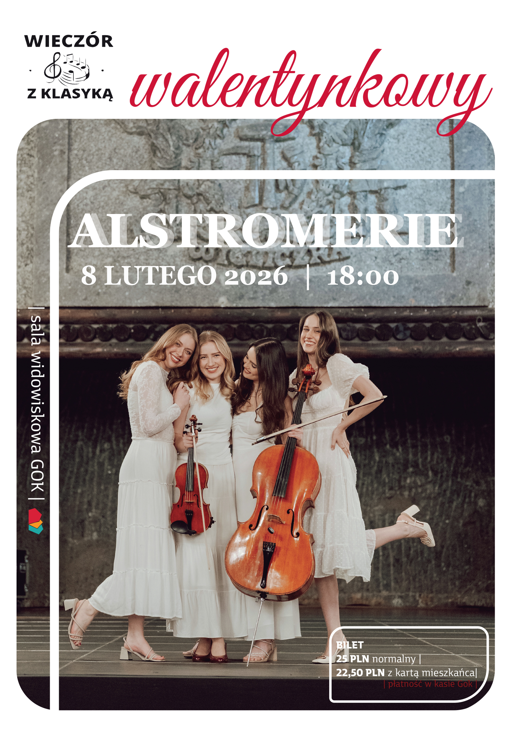 Na naszej scenie wystąpi zespół młodych i utalentowanych dziewczyn, które przedstawią nam inną odsłonę muzyki klasycznej. Agata Fugat, Karolina Kruszecka, Weronika Mucha i Wiktoria Heryszek to studentki Akademii Muzycznej w Katowicach, które założyły zespół Alstromerie.