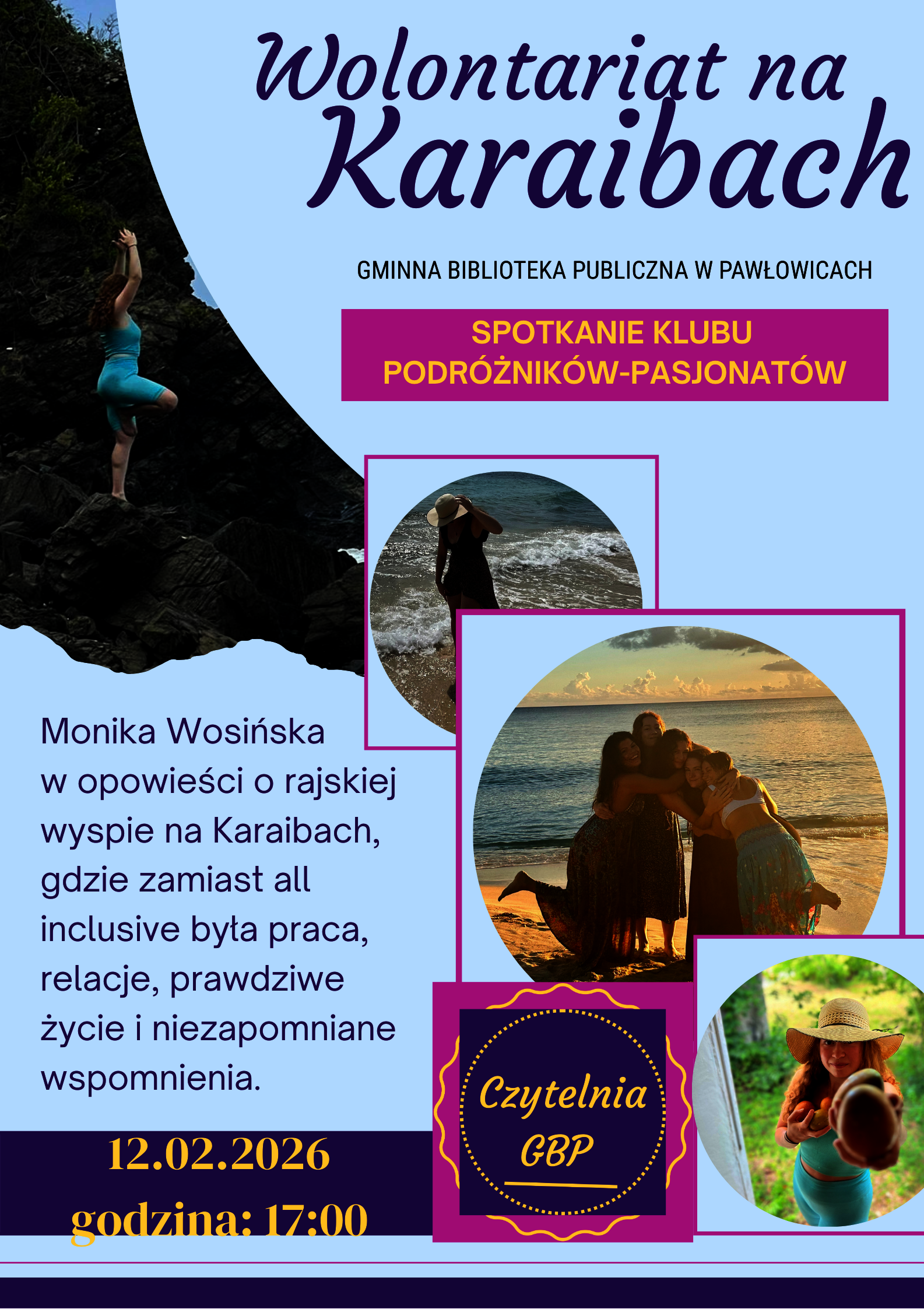 Monika Wosińska – Pawłowiczanka, pasjonatka podróży i studentka studiów magisterskich w Pekinie, opowie o wolontariacie, codzienności i życiu w rytmie rajskiej wyspy. W ten zimowy czas zabierze Was na rozgrzewającą wyprawę tam, gdzie słońce świeci mocniej niezależnie miesiąca. Będzie o ludziach, kulturze, zapierającej dech w piersiach naturze i momentach, które zmieniają perspektywę.