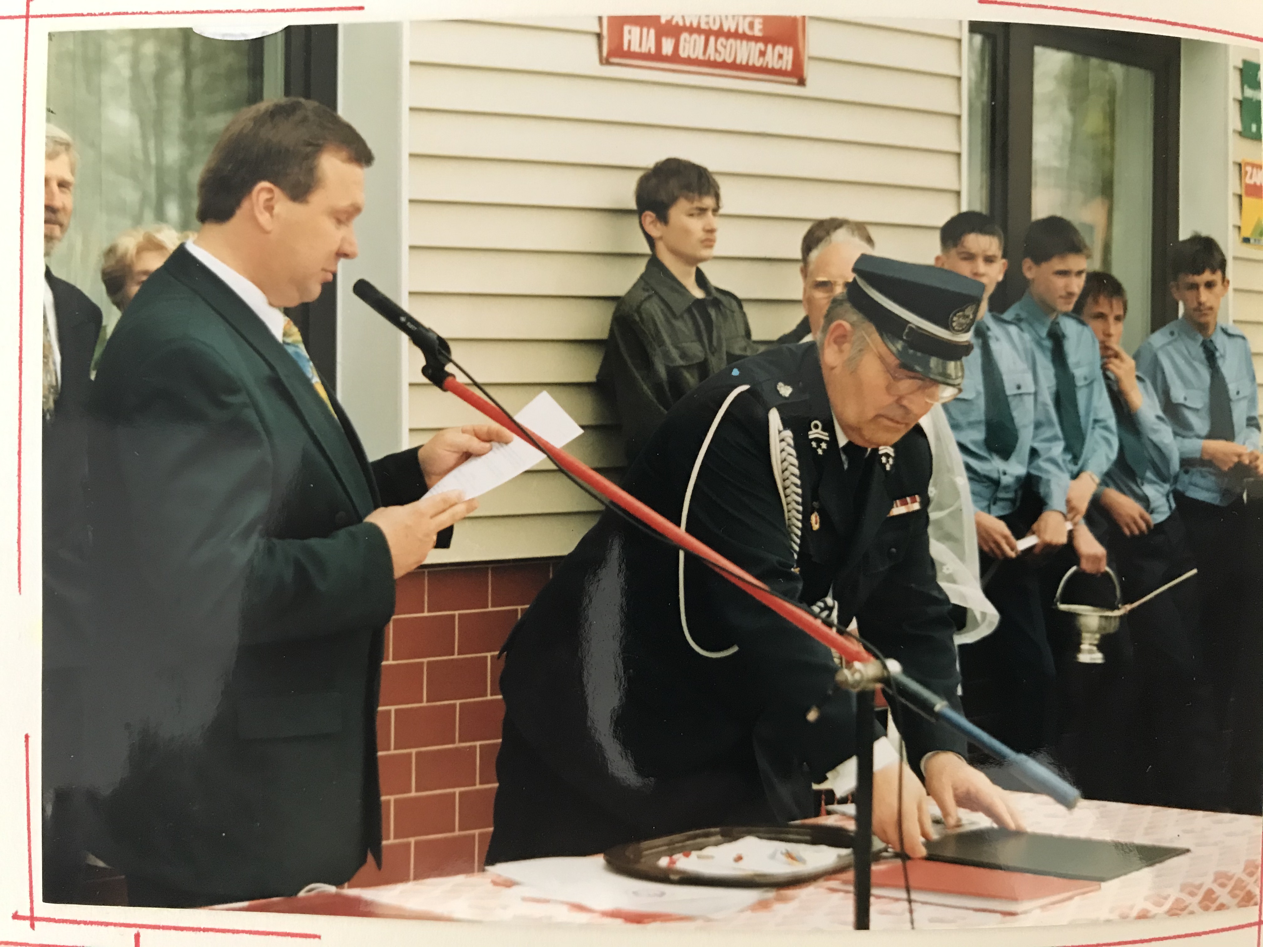 - tzw. HOST w Jastrzębiu-Zdroju Ogólny koszt telefonizacji(do 31.01.1996 r.) wyniósł 7 637.949 zł. Wkład gminy 1 801 379 zł.***85 lat OSP w Golasowicach3 maja 1996 roku w Golasowicach uroczyście obchodzono 85 rocznicę powstania Ochotniczej Straży Pożarnej (…)Na tym gustownym placu przed Domem Strażaka nikt nie wątpił, że golasowickim gospodarzom uroczystości towarzyszą najlepsze życzenia władz zwierzchnich, bratnich straży i ogółu mieszkańców (…) [zob.fot.]