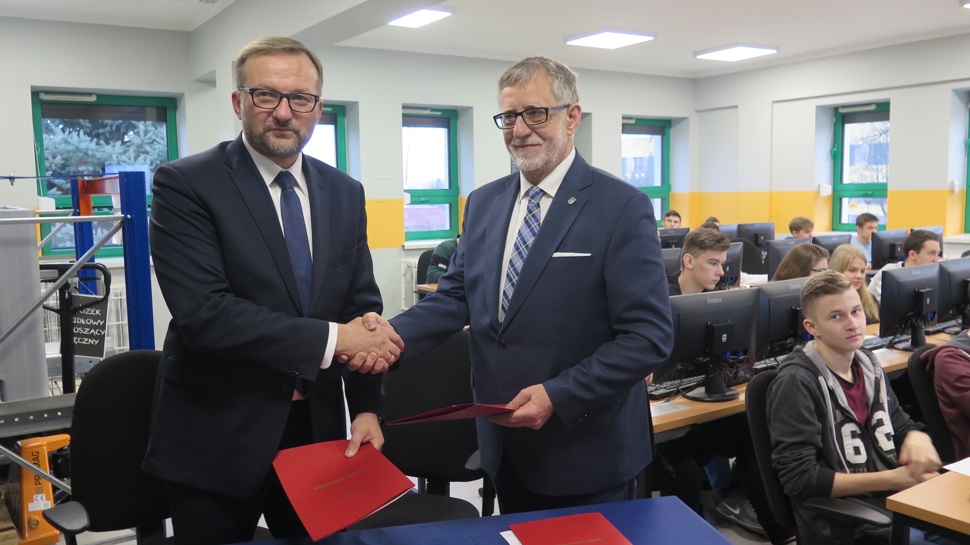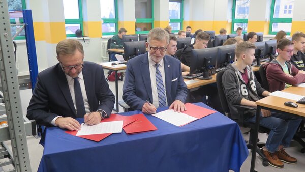 Dzisiaj, 17 grudnia, w obecności uczniów, porozumienie podpisał: Franciszek Dziendziel wójt gminy Pawłowice, Jarosław Domin prezes JAS-FBG S.A. oraz Andrzej Wowra Dyrektor ZSO.