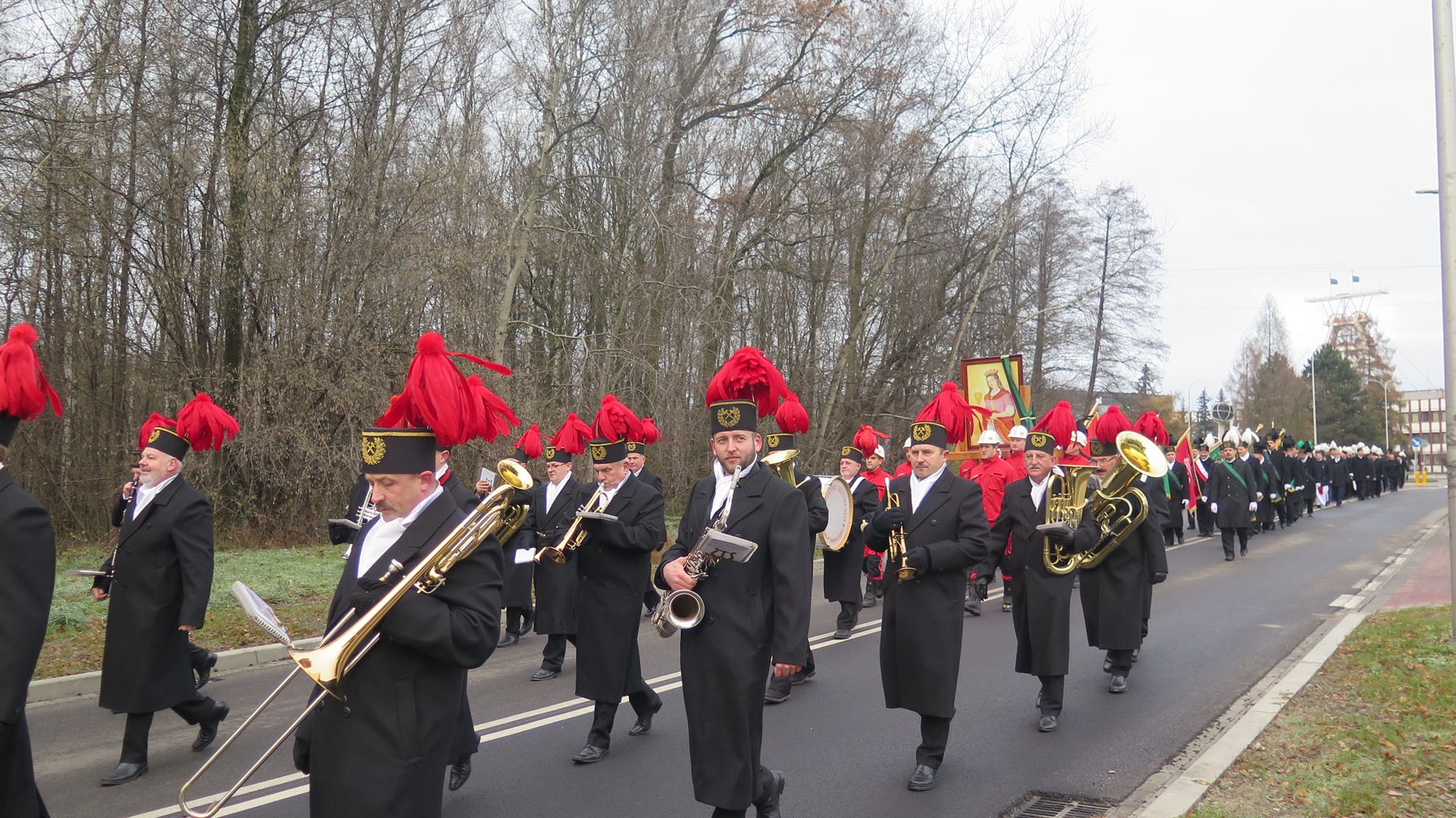 Wczorajsze obchody rozpoczęły się złożeniem kwiatów pod pomnikiem św. Barbary w kopalni „Pniówek”. Następnie uczestnicy święta, prowadzeni przez orkiestrę górniczą, przemaszerowali na mszę do Kościoła Podwyższenia Krzyża Świętego w Osiedlu Pawłowicach. Podobnie jak w latach ubiegłych, przedszkolaki z Publicznego Przedszkola z Modrzewiowym Ogrodzie oraz uczniowie klas 1-3 z ZSP w Pawłowicach witali górniczy pochód. Dzieci, przystrojone we własnoręcznie zrobione czapki górnicze, machały zielono–czarnymi chorągiewkami oraz kwiatami.
